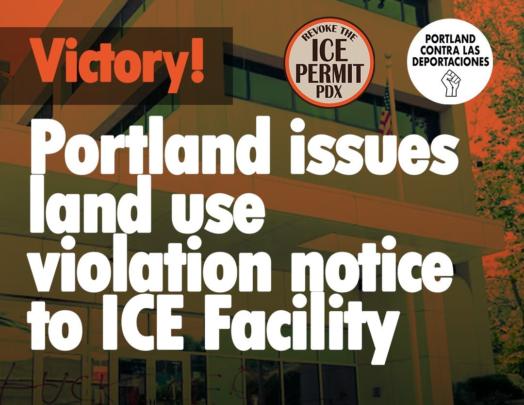 On September 18, 2025, the City of Portland issued a land use violation notice to the ICE Facility on Macadam. This comes after years of permit violations — both in how ICE treats immigrants and in how it endangers the surrounding neighborhood — and years of relentless community organizing to shut the facility down.